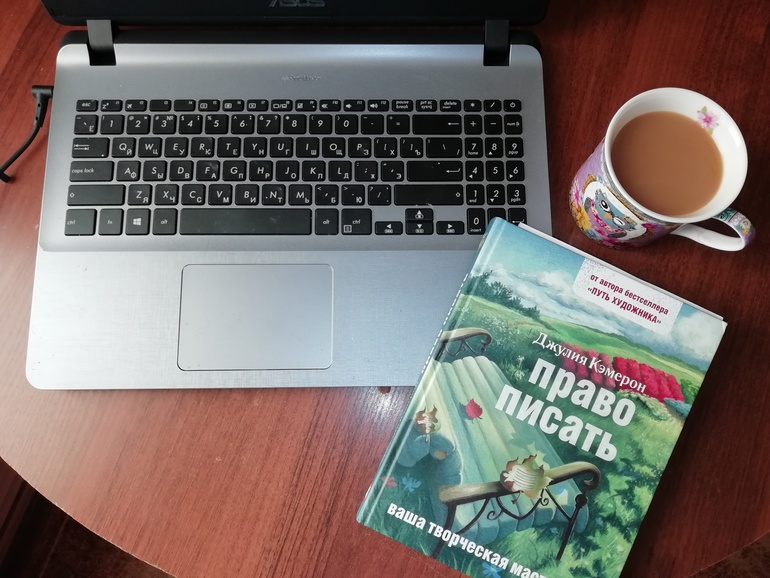А чтобы не было очень страшно в моей писательской деятельности, я взяла в помощники книгу известного эксперта по раскрытию творческого начала в каждом человеке - "Право писать. Приглашение к приобщению к писательской жизни." Джулии Кэмерон.