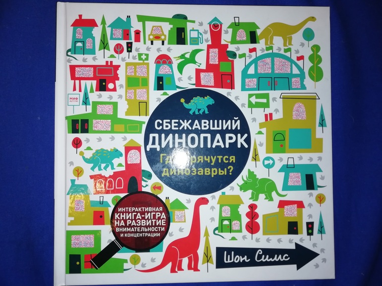В нашей библиотеке каких только книг нет- с красивыми иллюстрациями, с окошками, с секретиками... А вот Сбежавший динопарк все-таки смогла удивить дочку, потому что это книга с волшебной лупой, а такой у нас еще не было.