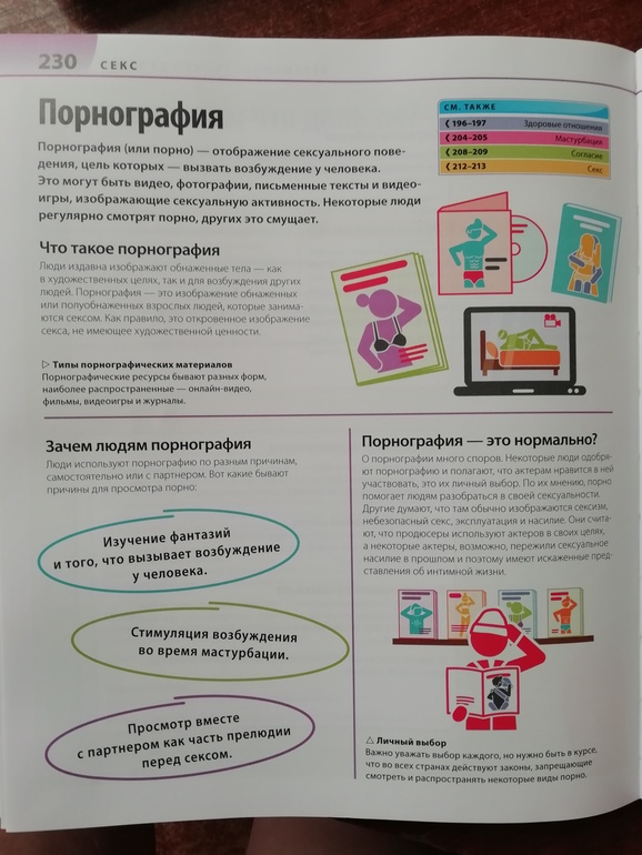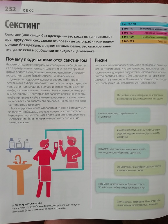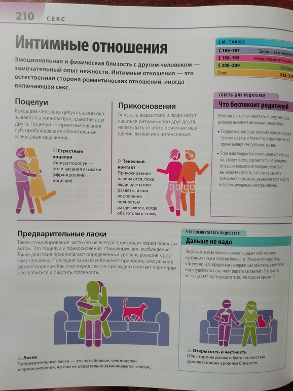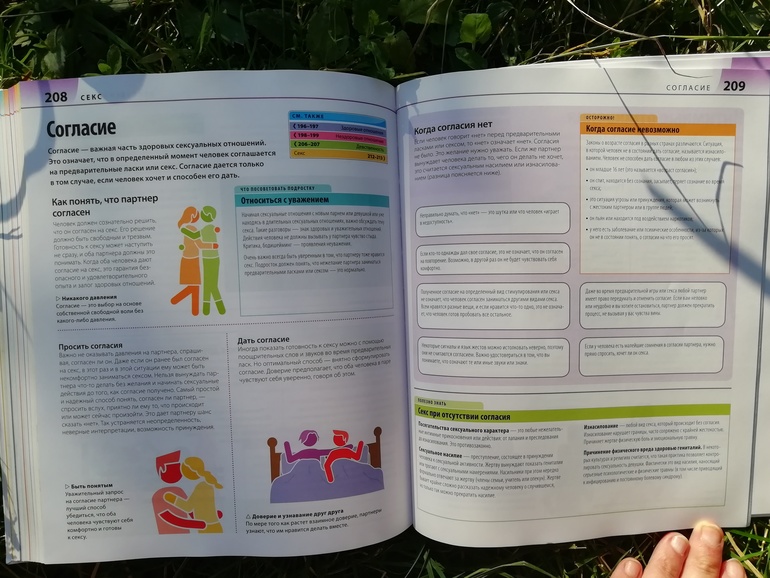 А вот так освящена, пожалуй, самая сложная для большинства родителей тема разговора с детьми-секс. Что важно лично для меня, это то, что в книге не только рассказывается что такое секс, но и обсуждаются вопросы безопасности, согласия и порнографии. В наш цифровой век у детей больше рисков, нежели было в наше время и поэтому очень важно обсудить интернет переписки, секстинг и прочие опасности, которые подстерегают подростка на просторах интернета.