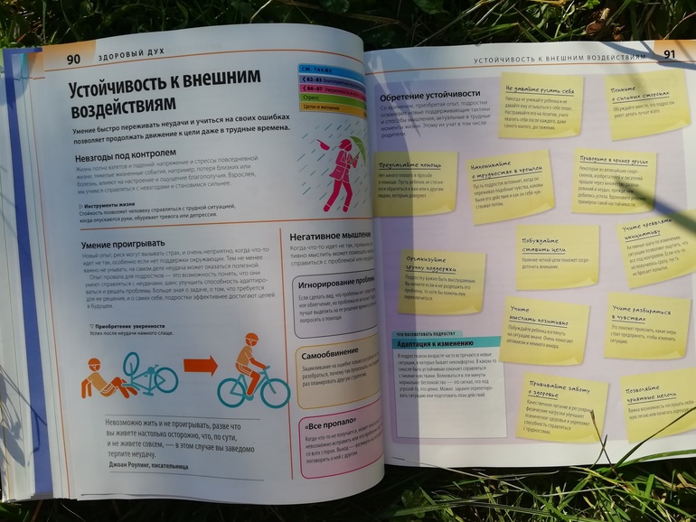 Следующий раздел-здоровый дух. Он освящает темы эмоций, уверенности в себе, самооценки, стресса, тревоги и депрессии. В общем, все что может быть связано с психическим состоянием подростка.