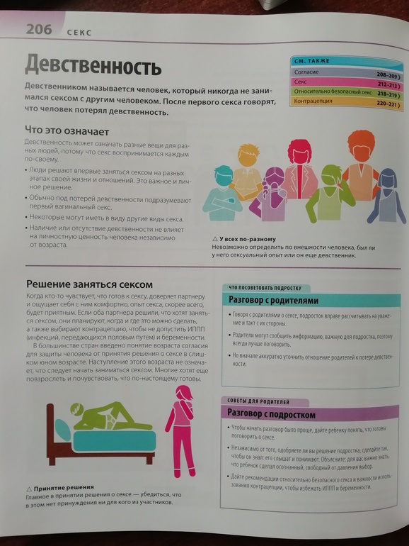 Начинается раздел с объяснения что такое мастурбация и девственность. Так же затрагивается тема согласия (на мой взгляд, это одна из самых нужных тем при обсуждении секса)