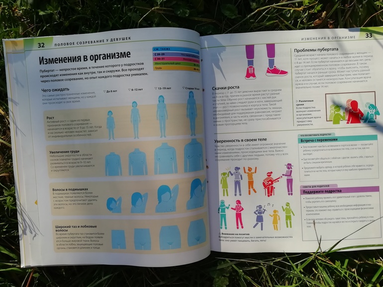 Подводя итог, я хочу сказать, что книга мегаполезная! Она очень долгоиграющаяя, в ней рассмотрены все темы взросления ребенка со всех сторон, начиная со здоровья и заканчивая сексом. Конечно, я не буду вываливать всю информацию на ребенка сразу, мы будим изучать ее небольшими порциями по мере взросления. С сыном (ему почти 12 лет) мы уже начали изучение книги, с дочкой пока не приступали, так как считаю, что рано.