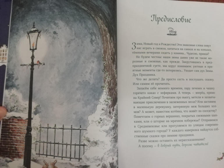 Книга начинается с предисловия. В нем автор сетует, что наши зимы не такие снежные как раньше и предлагает читать истории про снег, новый год и рождество, предварительно сделав себе чашечку горячего какао с зефирками. По-моему, это отличная идея.