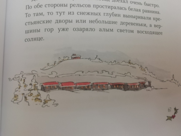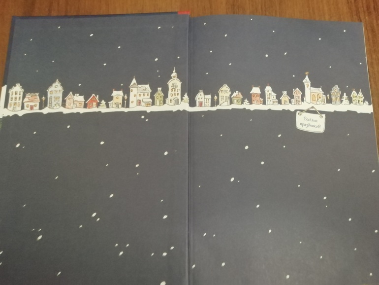 У книги очень красивый форзац, у меня ассоциируется с городком на подоконнике, который я все хочу поставить каждый год в декабре, но не нахожу на это время.