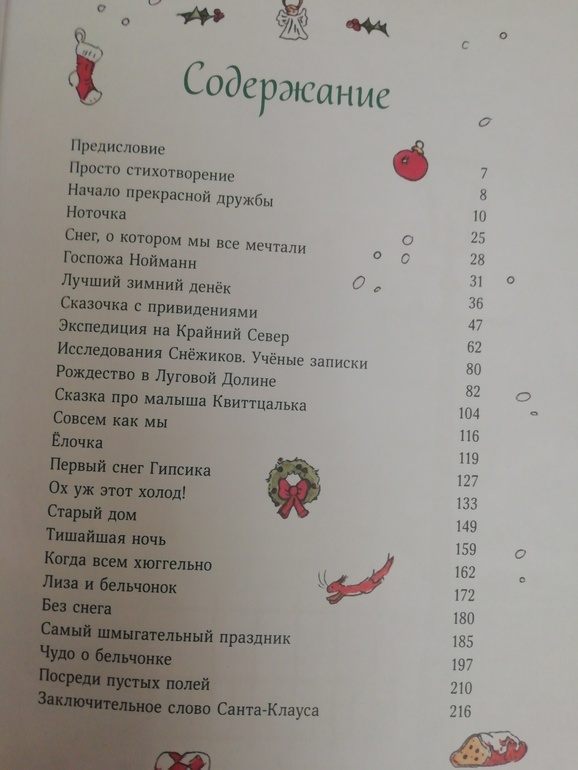 Сама книжка толстенькая, в ней собрано много разных рождественских и новогодних историй. Главные герои в каждой истории разные. Это не сборник рассказов про Тильду, как предыдущие книги из этой серии. Содержание книги на фото: