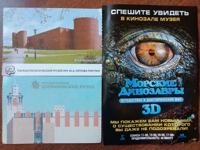 Мы ездили в палеонтологический музей, в музей Дарвина, смотрели документальный фильм про морских динозавров в 3D, кормили в парке уток. Хотели ещё в кино сходить, но ничего интересного сейчас в кинотеатрах не идёт.