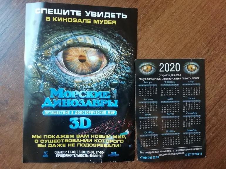 В Дарвиновском музее мы ходили на фильм Морские динозавры в 3D, фильм очень интересный, дочке понравился, но от очков болели глаза и на второй фильм, про коралловый риф, мы решили не идти. На память Ксюше подарили маленький календарик, она его положила в пенал.