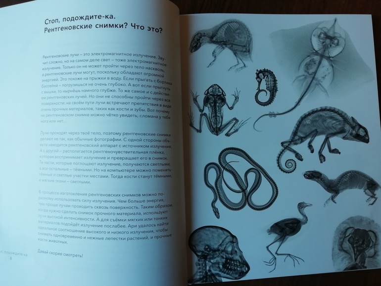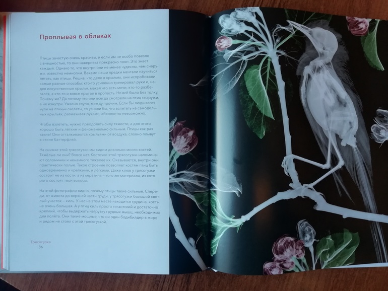 Больше всего Ксюше понравились рентгеновские снимки птиц. Если бы в книге были кошки, то понравились бы больше кошки, но их, к сожалению, не оказалось. Зато оказалось много интересной информации о живых существах, населяющих нашу землю и о птицах в том числе.