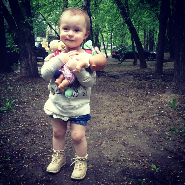 * А буквально через несколько дней в город пришла жара=) И Тасе ударило в голову ходить на прогулки только с куклами))