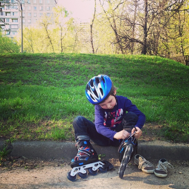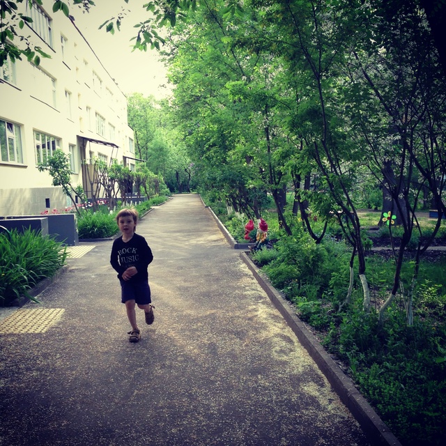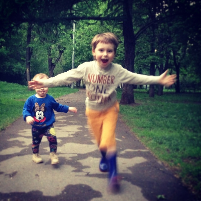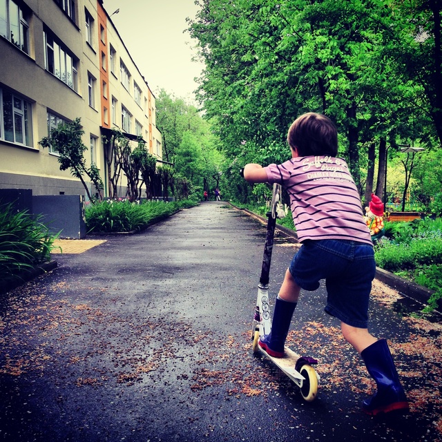 * первый заезд на улице. И последний) Савеля надел ролики, сказал, что он мастер и сиганул. Три метра на толчке и шлеп) Потом катался за руки с нами и всееее... Теперь тренируется дома) Ждет, когда "такие свободные родители" сообразят тренера.