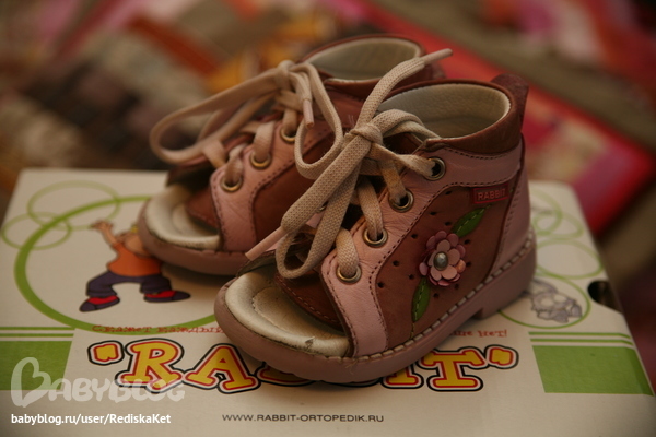 7.Правильные ботиночки на первый шаг Rabbit Ortopedic: шнурки, супинатор, высокий жесткий задник. Хорошее состояние, ходили в них немного и только дома, но вот поползали чуток и стерли мысы:)
