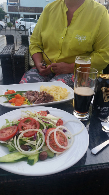 И да я после Ирландии тестирую везде Гинесс. И на Кипре попробовала. Самый вкусный все таки на родине. На фото салат греческий и клефтико (уже разобрали) я так и не поняла почему салат с капустой, вроде не кладут ее туда???? или я делаю не тот греческий))))) Клефтико бесподобно.