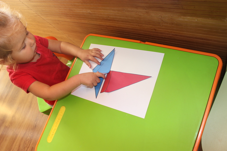 10. Танграм. Я на всякий случай распечатала 2 вида танграма. С первым Яся справилась без проблем