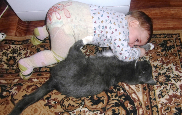 Любит-кота! Взяли мы опять....дом свой-с холодами мышатина поперла((( Любовь взаимная оказалась. Терпит все её выкидоны.