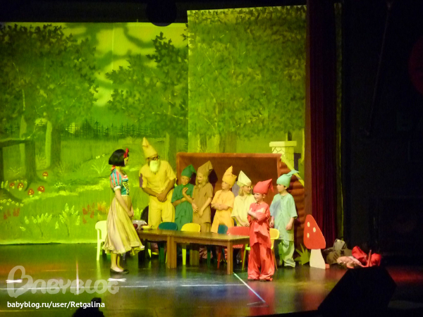 Раз в две недели детские аниматоры ставят спектакль "Белоснежка и семь гномов".