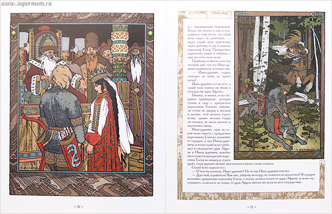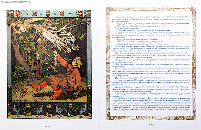Но! Сколько же в ней опечаток! Я при первом прочтении нашла только штук 5! Как будто текст отсканировали из другой книги, затем распознали, а ошибки не исправили. "сё" вместо "её", "парод" вместо "народ", и т.д. Но даже при таком обстоятельстве (я ни в коем случае не оправдываю сейчас издательство, стыд вам и позор за непроверенный текст), я не жалею о покупке книги. Я сравнивала отзывы разных книг с билибинскими иллюстрациями, и, похоже, только здесь можно увидеть такое качество иллюстраций.
