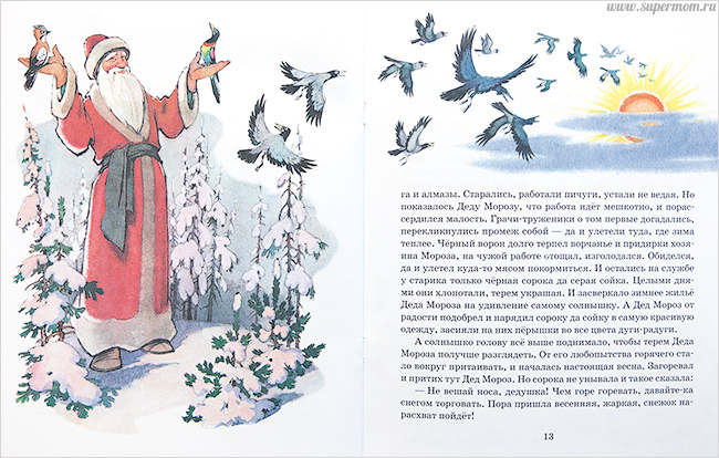Иллюстрации Ирины Мавриной просто необыкновенно хороши! Сказочные-сказочные, русские-русские, очень насыщенные, яркие, но при этом не пестрые, зато сколько деталей - настоящие картины! Как всегда, я купила книгу заранее, а прочитала в 3,5. И она очень хорошо вписалась в нашу библиотеку на этот возраст.