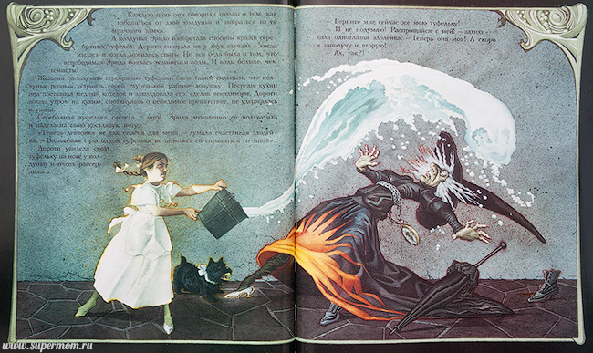 Качество печати и правда великолепное. Книга формата А4 в мягкой лимитированной обложке, отпечатана на милованной бумаге. Рисунки яркие и сочные, даже с использованием золотой краски, красивый шрифт, идеальные рамки и виньетки.