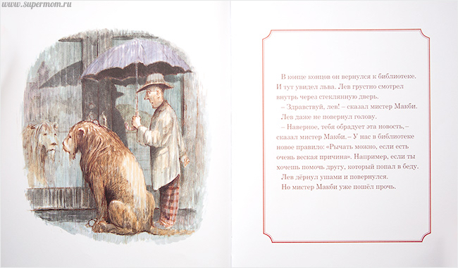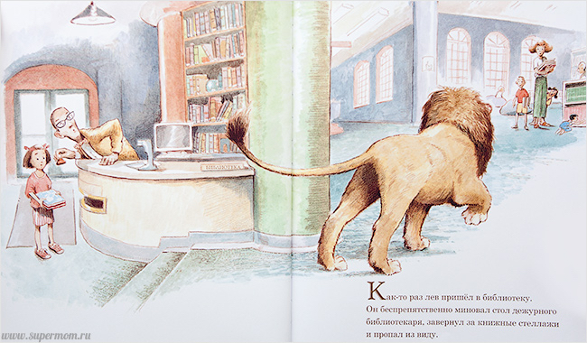 Так лев прижился в библиотеке, помогал работникам протирать пыль, заклеивать конверты, а детям - доставать с верхних полок книги. А еще он слушал сказки. Но однажды лев зарычал...