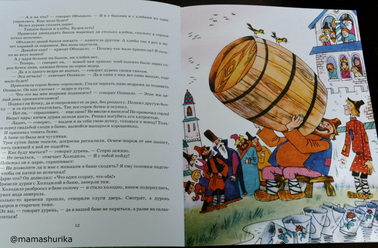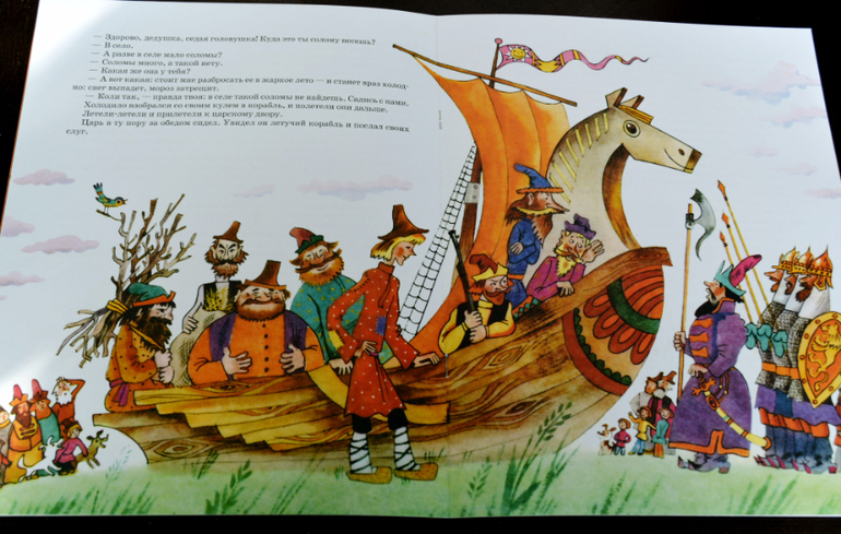 И хотя сейчас "Летучих кораблей" очень много, в разных издательствах, с разными обработками, с разными иллюстрациями, выбирай какую хочешь! Но пересмотрев все, остановила свой выбор именно на этой книге, тут удачно совпали и иллюстрации и обработка (на мой вкус конечно) , хотя и тут не без минусов, кое где чуть смазаны иллюстрации, но это совсем не критично, даже я бы сказала это заметно если сильно приглядываться и очень сильно придираться, так что в целом я книгой довольна, очень! Шурику тоже понравился этот вариант, до этого мы в другой обработке читали сказку (в сборнике).