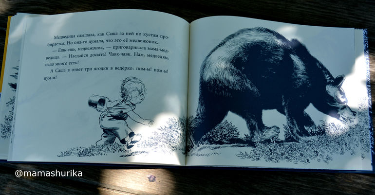 И случится так, что девочка Саша пойдёт за медведицей, а медвежонок за Сашиной мамой, когда мамы это обнаружат, они начнут искать своих детей . Тут забавно описано