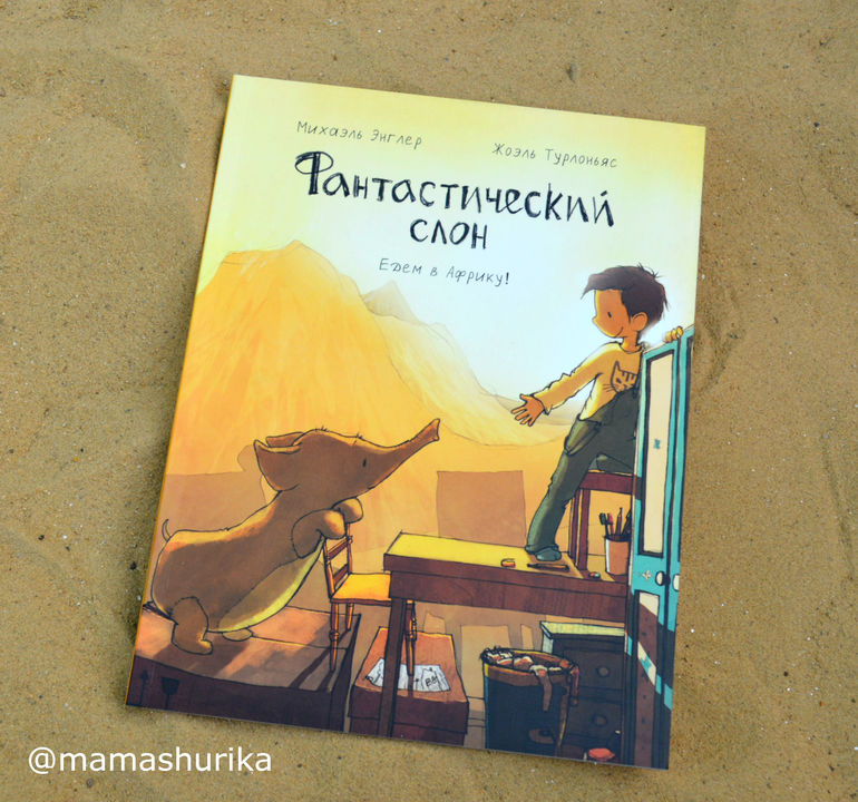 В общем можно было спокойно пройти мимо этой книги, не знаю почему она меня зацепила. История в общем неплохая, такая как бы книга - игра. Мальчик Антон вскрывает посылку, предназначенную для соседей (ну он думал что это ему посылка) . В посылке он находит большого плюшевого слона и начинает играть с ним. Они понарошку отправляются в Африку, карабкаются на вершину "Килиманджаро" (стулья, стол. шкаф") , танцуют танец дождя, "охотятся на львов".. и тут приходит мама и всё портит говорит что это посылка предназначалась не ему, а соседской девочке, естественно ребёнок расстроен, но вынужден отнести слона девочке, к счастью девочка догадливая оказалась, заметила как Антон расстроен и предложила играть вместе. В общем книга ненавязчиво показывает как можно поиграть, развивает воображение, а ещё учит дружить и делится.