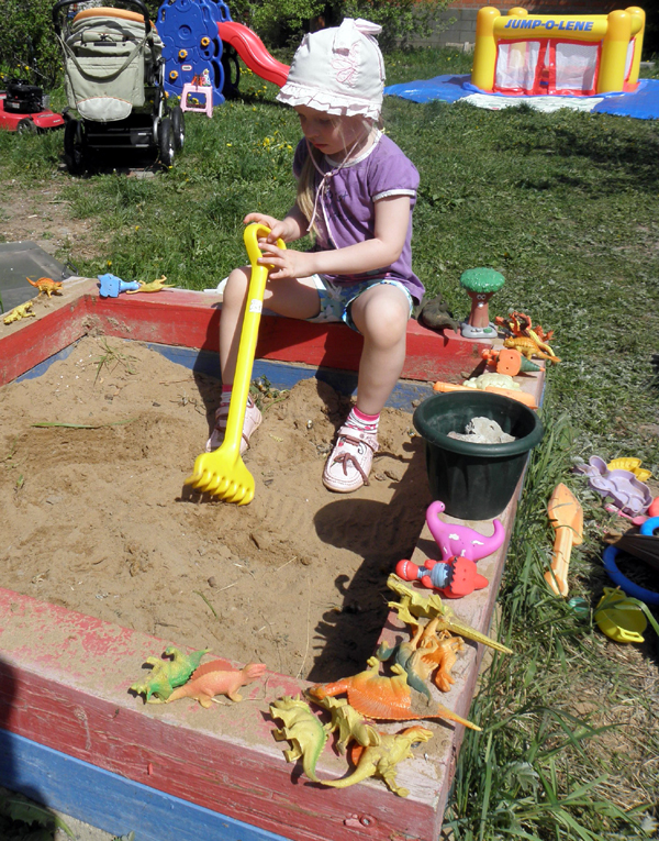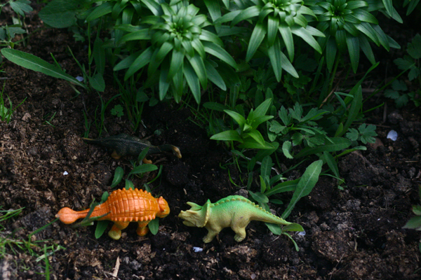 А динозавры оказывались в самых невероятных частях сада, так что сюжетных игр было предостаточно! Даже по завершении темы, динозавры так и остались жить на даче)