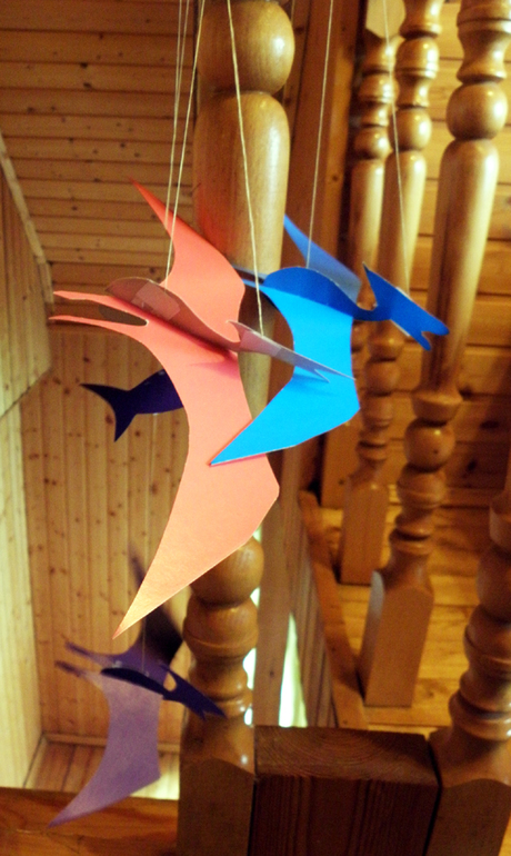 Жаль фото не очень удачное, но у нас вышел потрясающий мобиль с птеродактилями и рыбой, за которой они гоняются!