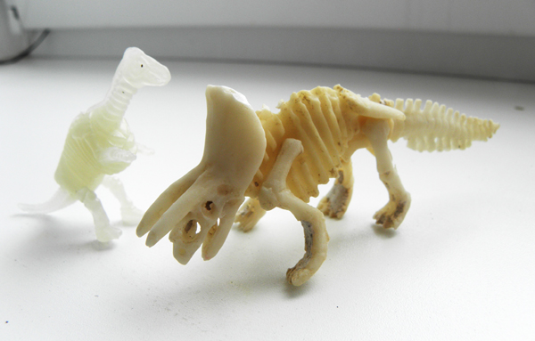 Цератопса потом надо еще и склеить, правильно разместив кости, так как все они были разъеденены, не простое задание в итоге вышло, даже папа помогал! Зато почти как у настоящего палеонтолога)))
