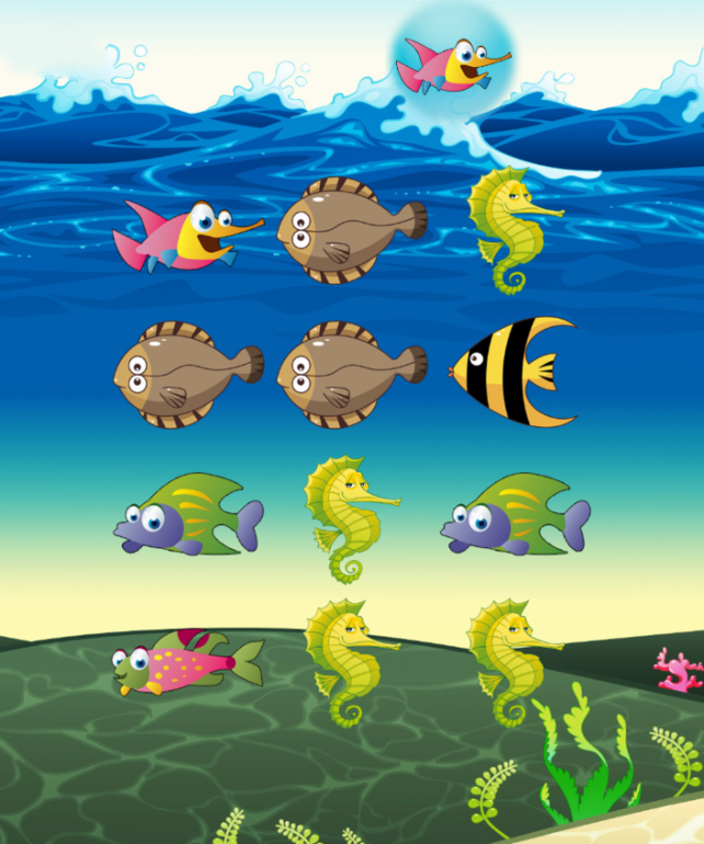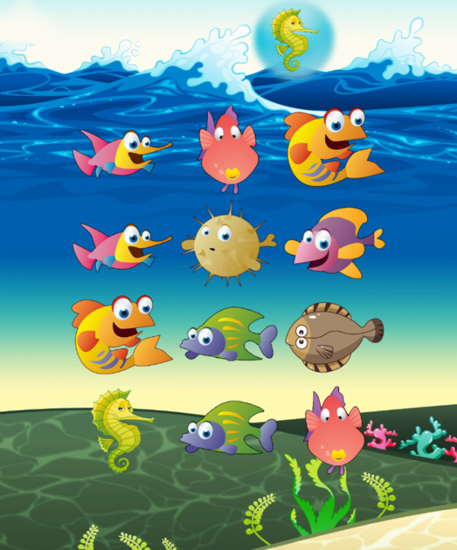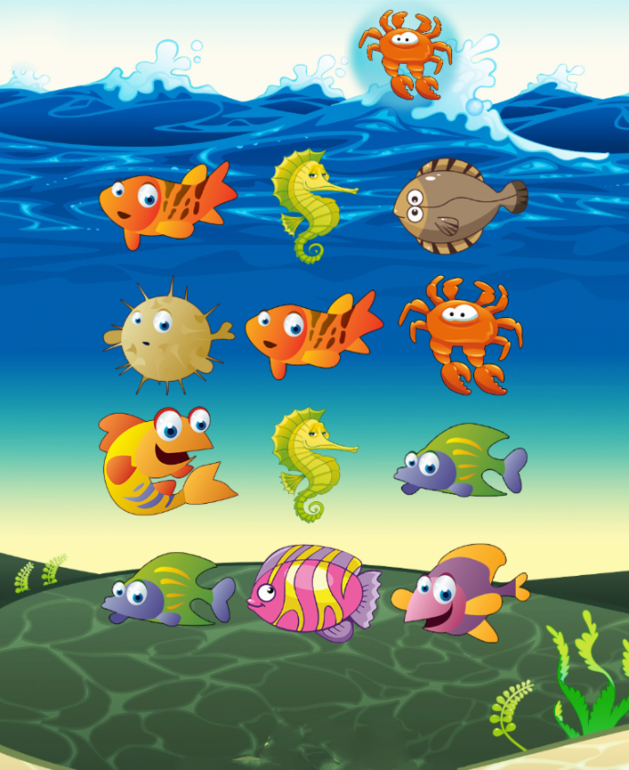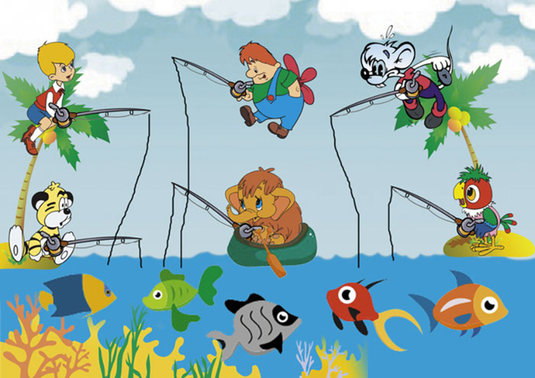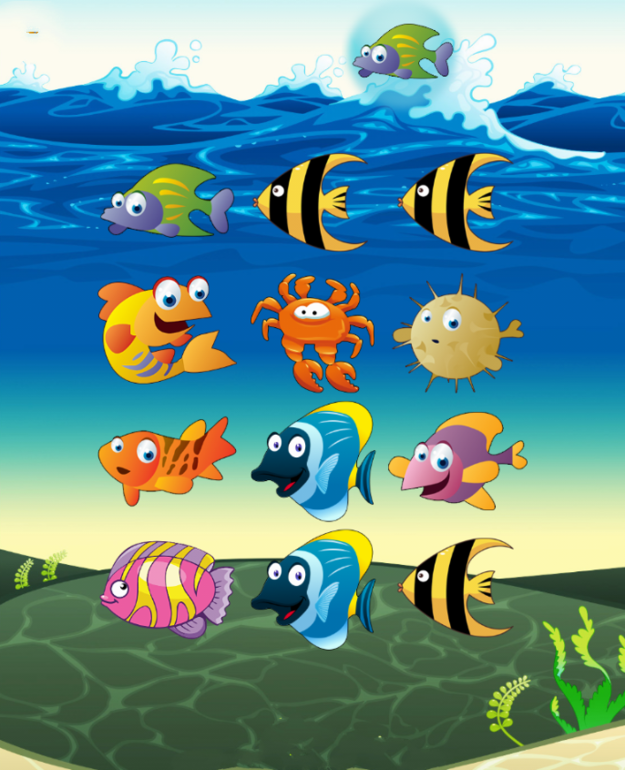 33. Игра ( "Ловись рыбка" Карточки разрезать и на картинках ими закрывать соответствующие рыбки как в лото)