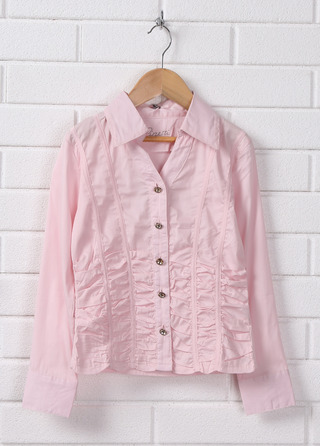3) блуза приталенная с рюшами. Розовая. 150 размер