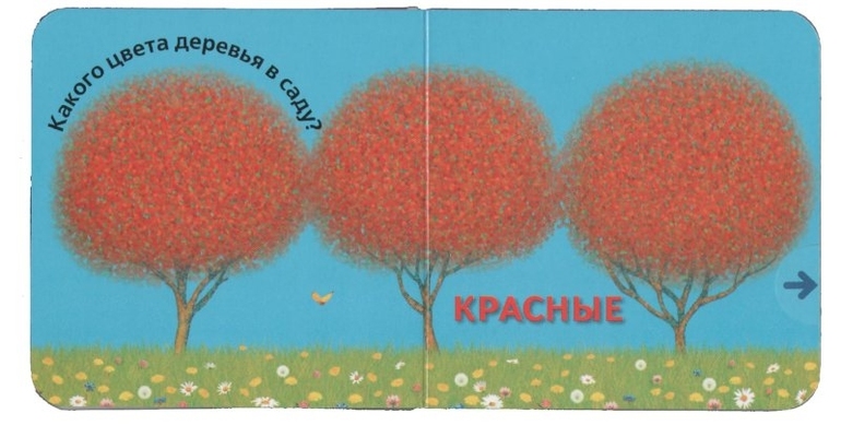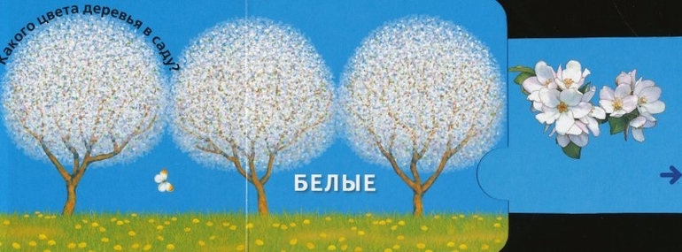 Еще в книжке какого цвета деревья в лесу, как мне кажется, перепутаны два разворота: желтые и золотые. Т.к. книжка сразу развалилась, то мы игровые элементы поставили в логическом порядке.