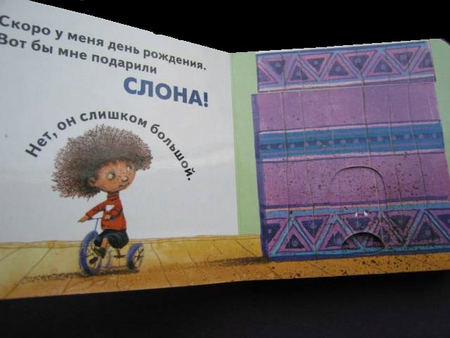 Начнем с маленьких книг (Удивительный подарок и Какого цвета деревья в саду), размер которых так хорошо ложится в ладошку 1,6 летнего ребенка. Идея очень классная, выдвигать и задвигать окошки, но качество сильно разочаровало! Может это только нам не повезло, но у нас обе книжки сразу развалились при первом просмотре, пришлось проклеить все страницы.