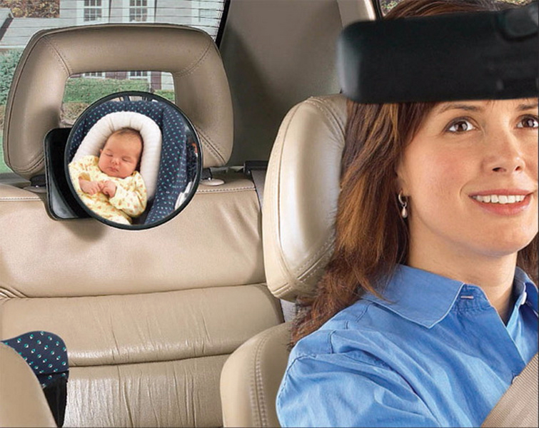 Очень удобно и как маме-водителю, и как маме-пассажиру на переднем сидении отслеживать ребенка - в этом случае смотришь в откинутый козырек от солнца, в котором косметическое зеркало встроено.