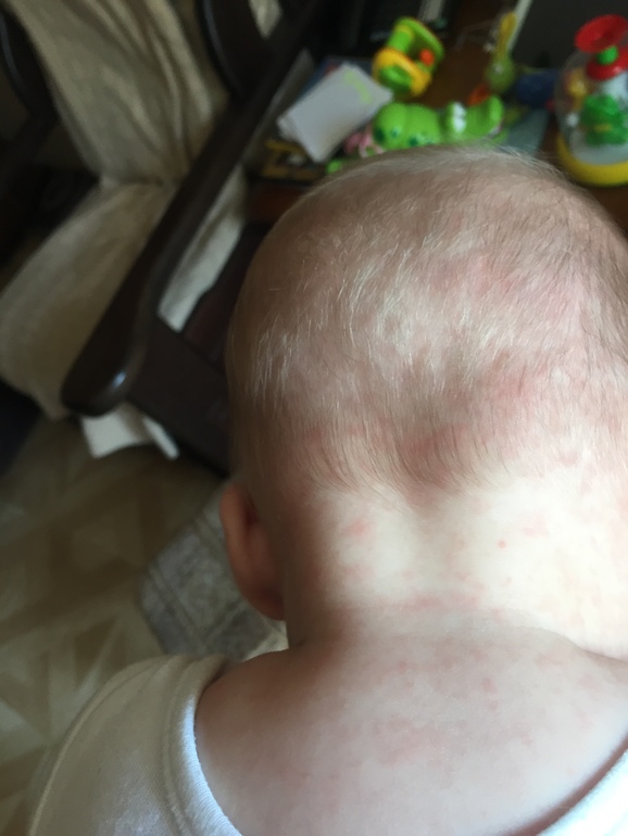 Нам 5,5 месяцев и вдруг такая картина. Вчера с вчера начало подсыпать моську у мелкого, а сегодня с утра смотрю вся спина-живот, все в мелких пятнышках!! Что это???!!