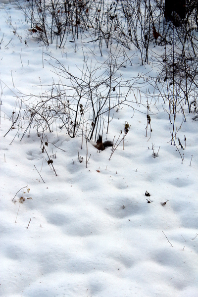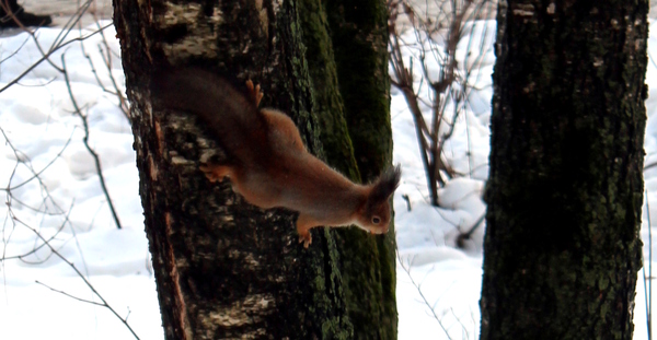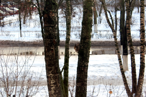 и главное не по деревьям значит прыгала, тк их нет в некоторых районах - застроенно все. Значит по дороге шла ..?!)))))))Если б увидела белку, прыгающую по дорожке средь города, уверенна подумала бы что пора отоспаться..)))