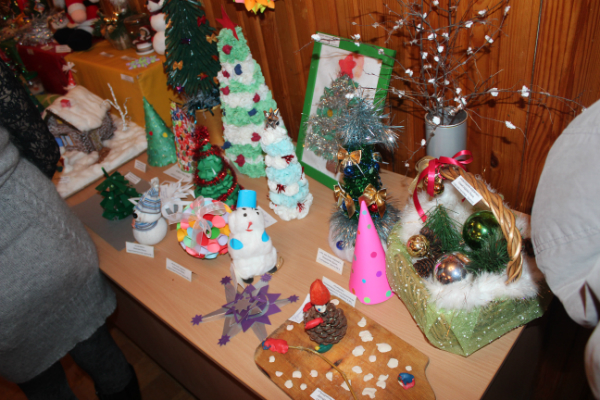 А еще, в актовом зале, где проходил праздник на выставке лежали поделки. Я поразилась- ну какие же ребятки молодцы! Большинство работ делали дети 2-й младшей группы, т.е. всем около 3х - 3.5 лет. Вы посмотрите какую красоту творят: