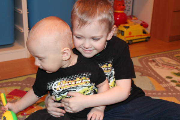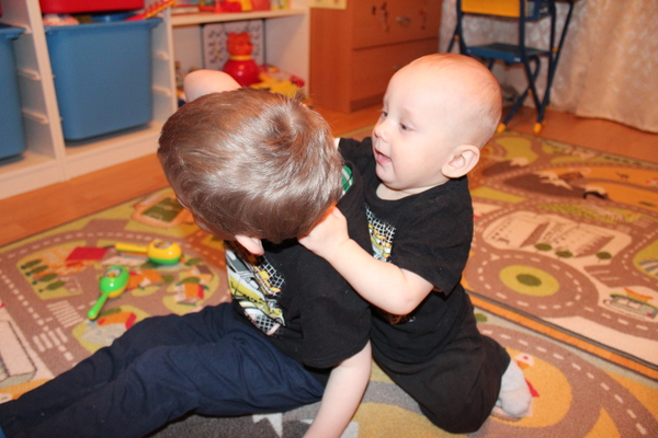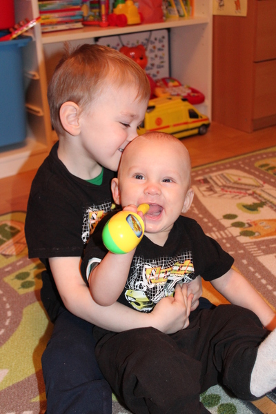Дима для Артема ну просто кумир, основной источник смеха, подвижных игр) а Диме пока не очень с Темкой интересно, тк тот мал еще и играть в том значении, в котором это Димуля понимает, не может, только ломает все, хихи)))) Но Димка оооочень ждет взросления брата, говорит "рожали б раньше") это он меня наслушался)