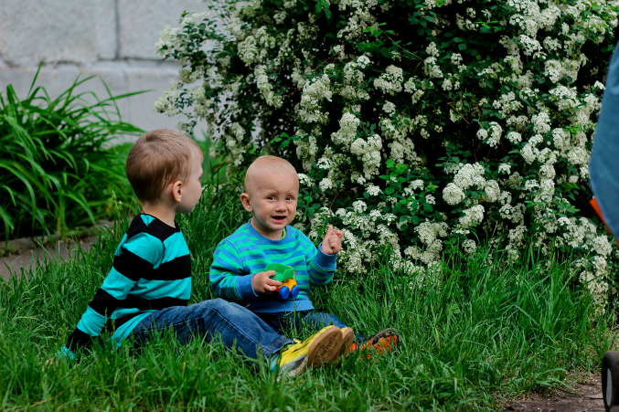 В нашем дворе сложилась дружная компания мамочек, с детками - ровесниками (ну почти ровесниками, мы самые младшие), атмосфера теплая и ненапряжная. Это ценно и дорого.