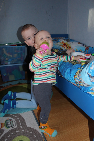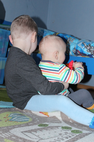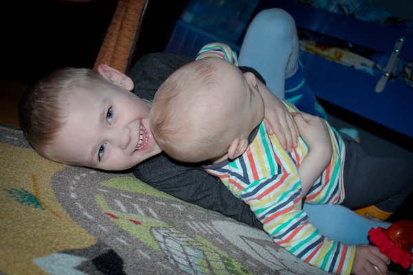 В целом, мне очень нравятся их отношения. И если бы Димка не тискал постоянно Артема, все было бы идеально. Хотя я должна понимать, что ему просто уже хочется поиграть с братом, что то рассказать...А так как толку еще мало вот так разыгрывается(