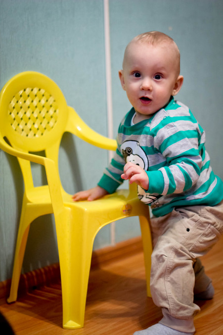 Я, бросаю все свои дела и мчусь отковыривать Артемыша от пола, на что Дима возмущается:"Мама, ну ты не видишь?!Я же его обнимаю, я не бью!" или так:" Это мой Артемочка и я его люблю!" Мне же непонятна эта ежеминутная необходимость потрогать и поцеловать. А, да. И время для этого Димка неудачное выбирает чаще всего. Ну вот представте карапуза на пике своих акробатических подвигов: встает на скользком ламинате, держась одной рукой за не очень то устойчивый ящик с игрушками, который то и дело норовит отодвинуться и не дать обозреть свои игрушечные недра, зацепился - подтянулся и опп...свободной рукой виртуозно подцепил нужную игрушку, чтож можно и насладиться эдакой взрослостью, но тут подлетает Димка, и эмоционально начинает поздравлять с успехами (обнимать, целовать руки, на ухо выкрикивать подбадривающие лозунги). Ноги малыша от неожиданности и даже наверное страха медленно, но верно начинают разъезжаться в разные стороны, Артем отчаянно пытается удержаться еще пару секунд. Не получается. Бабах. Рев. На выходе имеем плачущего ребеночка, отпрыгивающего и испуганного еще одного ребеночка (знает же, проказник, что получит от мамы), ну и меня злую и оторванную от дел, имеющую в запасе очередную ругалку на Диму. Дурдом, самый настоящий.