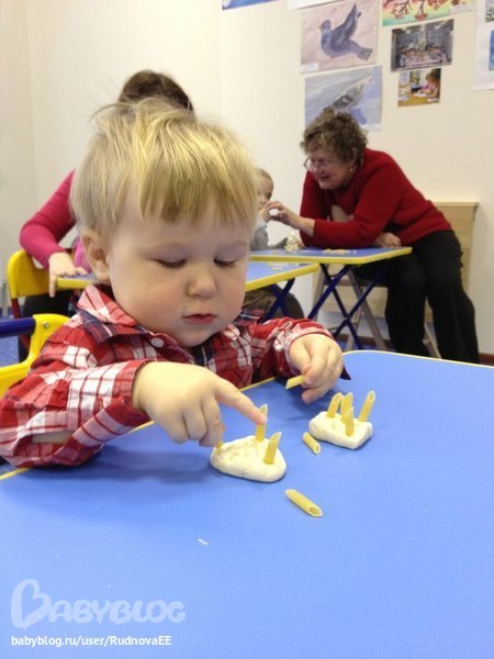 Начали мы ходить в школу развития))) сегодня было второе занятие и нам ооочень нравиться)) мы самые маленькие, там деткам от 1.5 и до 2, а нам еще и 1.2 нету))) но мы пока не отстаем, все делаем что просят, вообще сказали что мы смышленыши)) приятненько))) Вот сегодня лепили ежика))мы двоих слепили)))