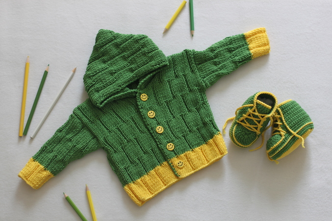 наш выписной костюмчик (первая вещь связанная спицами)
