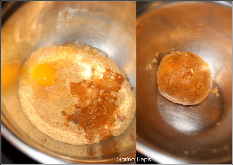 * Добавить яйцо, масло и хорошенько пожмякать. Попробуйте скатать в шар, если сухо, добавьте воды