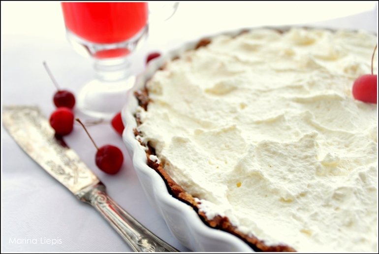 * Я пекла вечером, по этому унесла остывать до утра на балкон. А утром сделала верхний слой из бзбитых сливок