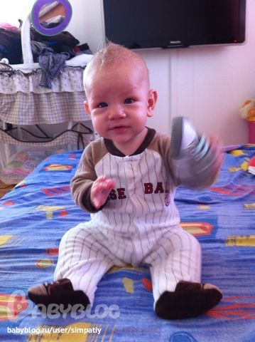 Что Кит умеет..: стоит, ползает, садиться сам как барсук прикольный такой... умеет играть в некоторые игры на моем телефоне...в больнице заняться нечем было вот и играли..дома щас редко.. пляшет попой виляет :))) начинает покрикивать если я одеваюсь первой, ему нужна уверенность что я возьму его с собой т.е. нужно одеть первого... ест из баночек пюре уже с мясом...любит творожок агуша,чай, рисовую молочную кашу.. ходит в ходунках несколько шагов...