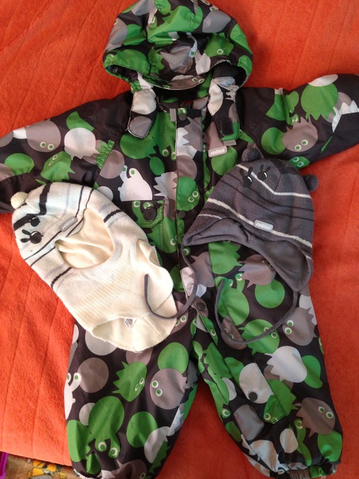 Шапка на выбор ,все в хорошем состоянии носили мало так были еще несколько комбезов, он же мембранный поэтому можно носить от + 5 до -20 а с поддевой до -35, он идет до 80 как написано на сайте но я бы сказала что и дольше можно носить, у сына рост 80 но рукова я подворачивала т.к длинные