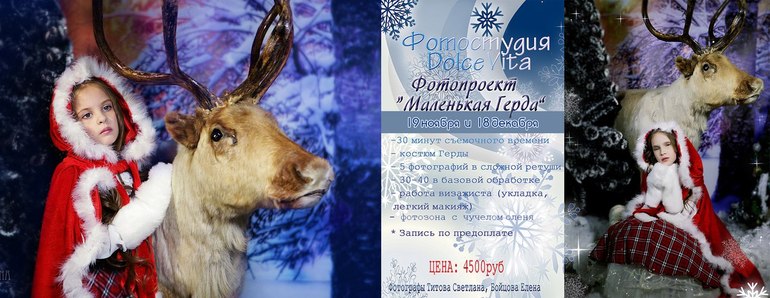 Открыта запись на новогодний проект "Маленькая Герда". Всего 2 дня, 19 ноября и 18 декабря. Записывайтесь, и приходите в сказку...
