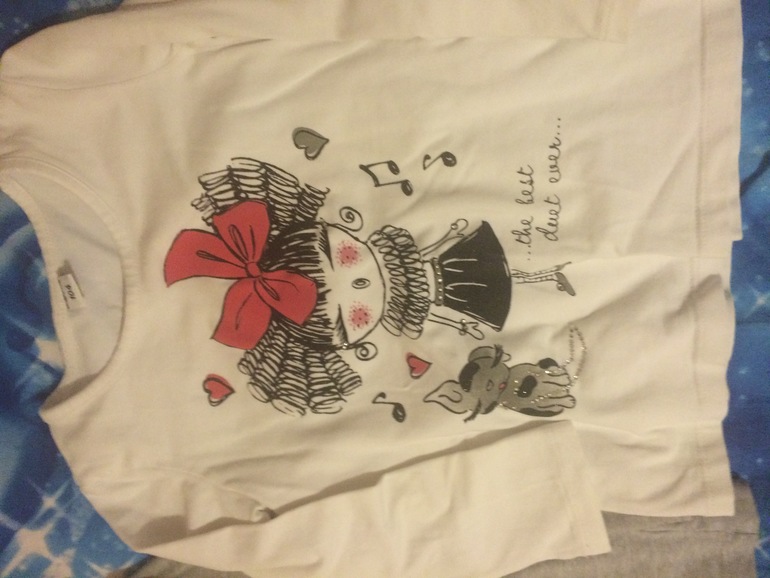Белая блуза р-р 104, серая - 110. На фото видно, что они практически одинаковые. Хорошо на рост от 96 см.