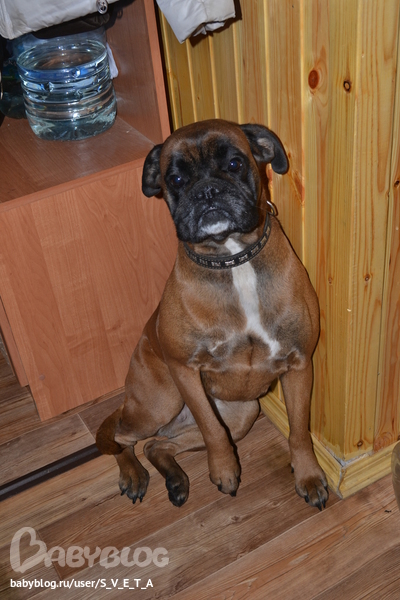 какая хорошенькая. У меня тоже боксер, заечательная порода. Кто возьмет тот будет просто одарен с головы до ног.)))))